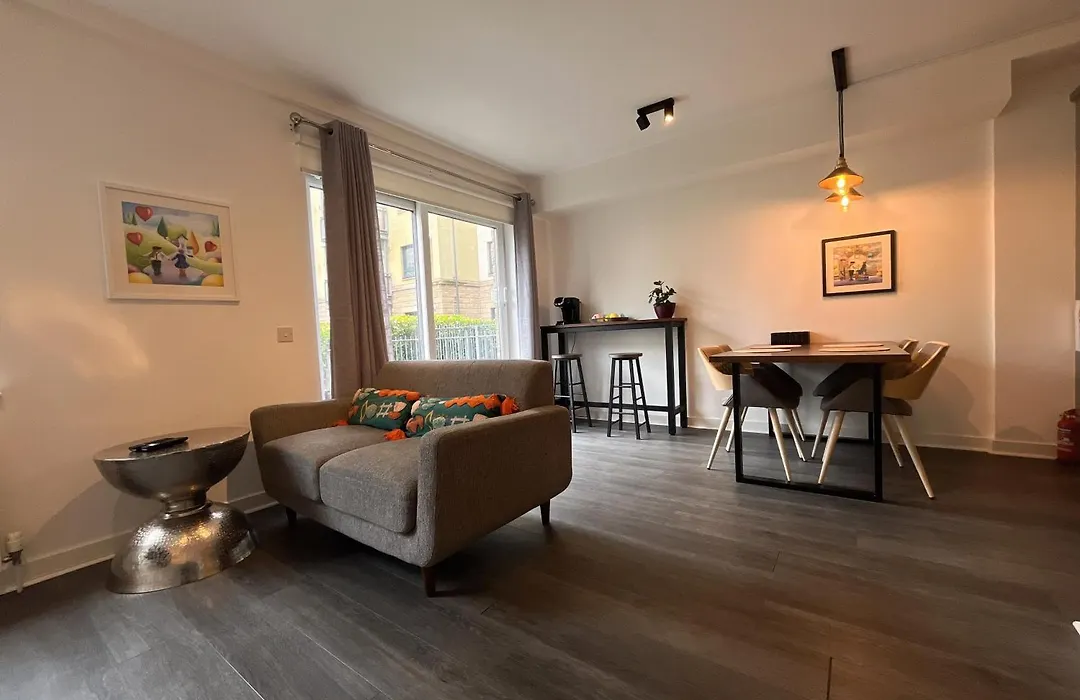 2 Bath Free Parking lägenhet är belägen i Edinburgs Leith distrikt, ca 20 km från Edinburgh flygplatsen. Lägenheten har också 2 badrum med separat toalett och dusch.